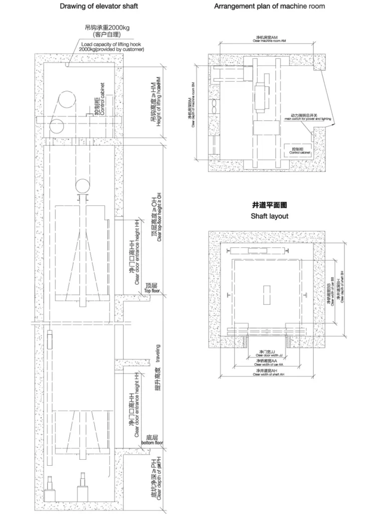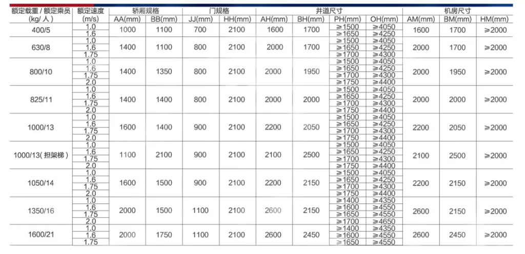 - Elevator capacity: 800kg,1000kg,1150kg,1350kg,1600kg